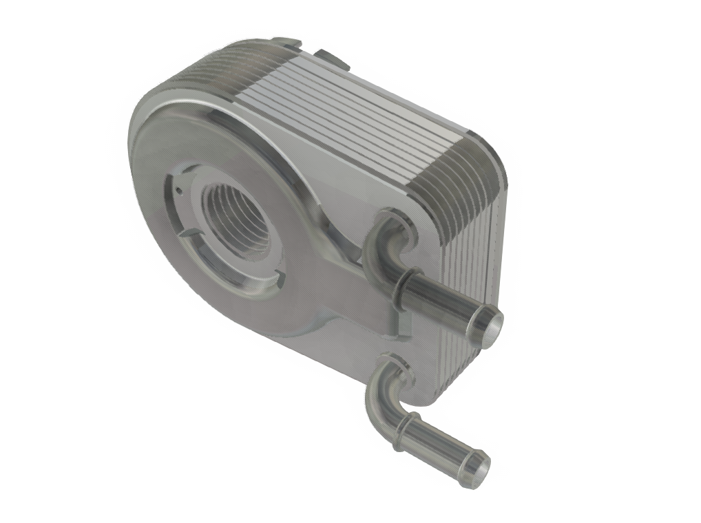 外掛水冷油鋁油冷器通常采用疊片式設(shè)計,適用于汽車上所有潤滑系統(tǒng)的熱平衡管理,通過潤滑油和冷卻液之間熱量的相互傳遞,保證潤滑油處在一個合理的溫度范圍,減少溫度過低時的油耗和延緩溫度過高時導(dǎo)致的潤滑油老化。該款產(chǎn)品一般分為整體式和圓盤式兩種結(jié)構(gòu)。