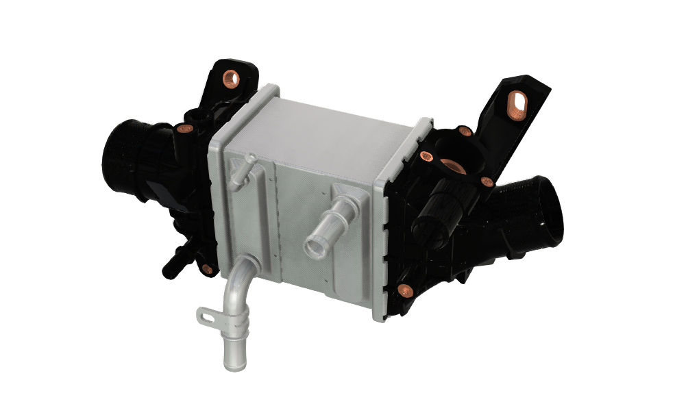 整體式鋁油冷器能夠在產(chǎn)品上布置引流和旁通通道,滿足不同油口和流量布置需求,同時單向閥、溫控閥等零件的集成能夠?qū)崿F(xiàn)潤滑油在流動和溫度上的管控。